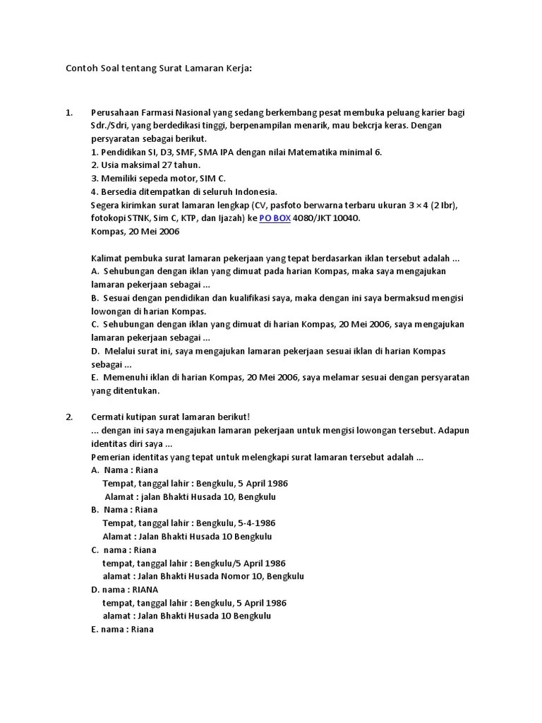 Contoh soal surat lamaran kerja pilihan ganda beserta.